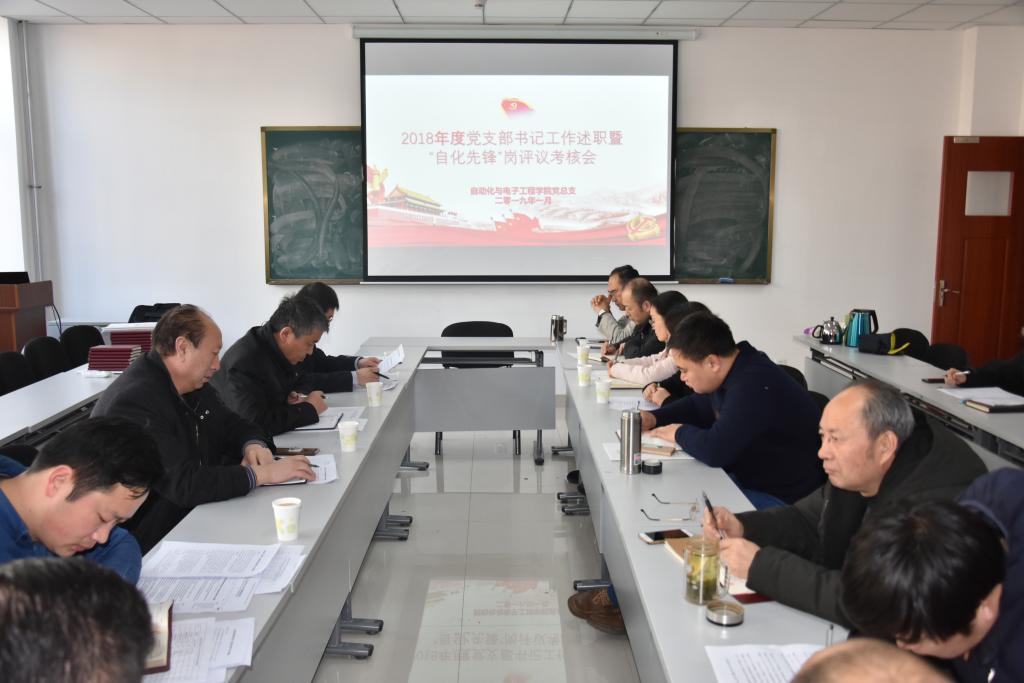 2018年度党支部书记工作述职暨“自化先锋”岗评议考核会在崂山校区D1楼406党建活动室举行,学校纪检监察室副处级纪检监察员赵丰、韦德体育