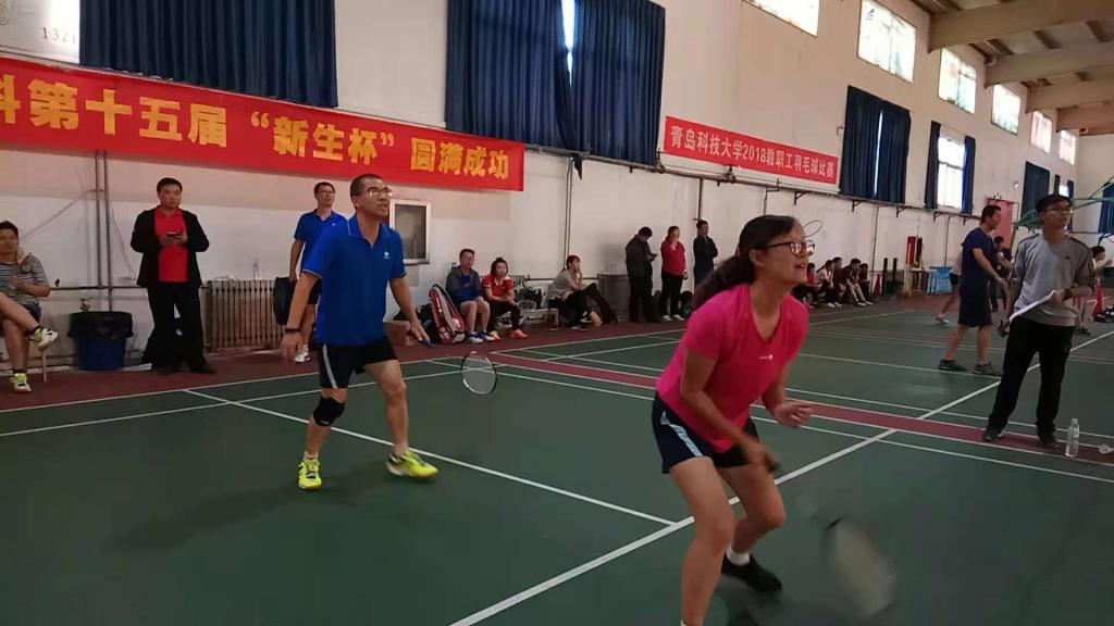 青岛科技大学第三届羽毛球比赛于10月23日下午在四方体育馆拉开了序幕。我院由黄翼虎、张涛、赵波、李莺歌、樊春玲、陈静、余新宁等教师组成参赛队伍,分别与材料韦德体育