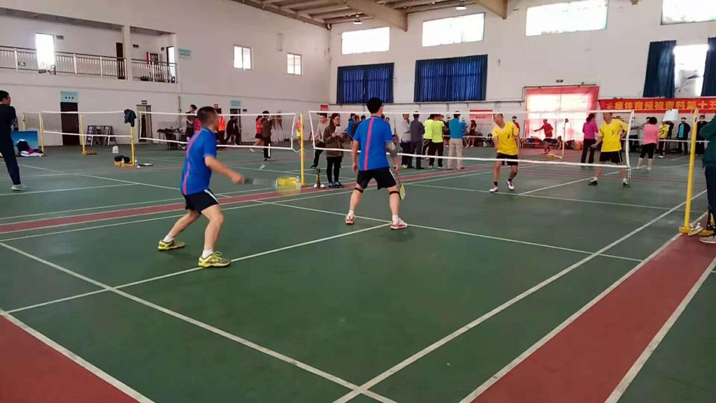 展开女双、混双、男双项目循环赛。选手们个个精神饱满、顽强拼搏,团队协作意识强烈,所有选手尽情施展技艺,各种战术的灵活运用,现场对决异常紧张激烈,特别是男双,令比赛精彩纷呈。赛场上,换上了轻便运动装的同事们,变成了活力四射的运动员,尽显风采,将高远球、扣杀、劈杀、吊球等各路球技展现的淋漓尽致;赛场下,大家的又是尽职的啦啦队,喝彩声、加油声、欢呼声此起彼伏。选手们遵循友谊第一、比赛第二的原则,赛出了风格,赛出了水平。