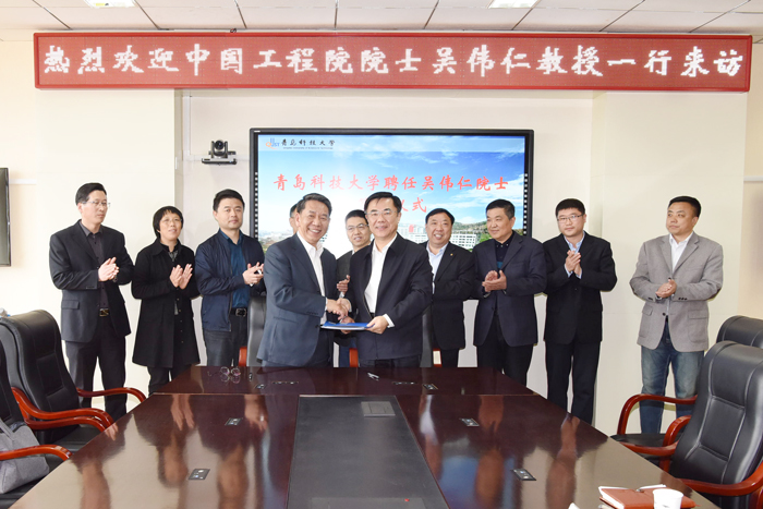 院士吴伟仁受聘青岛科技大学兼职院士。校党委书记、校长马连湘出席仪式并为吴伟仁院士颁发聘书。副校长吕万翔、人事处、工程学部、韦德体育