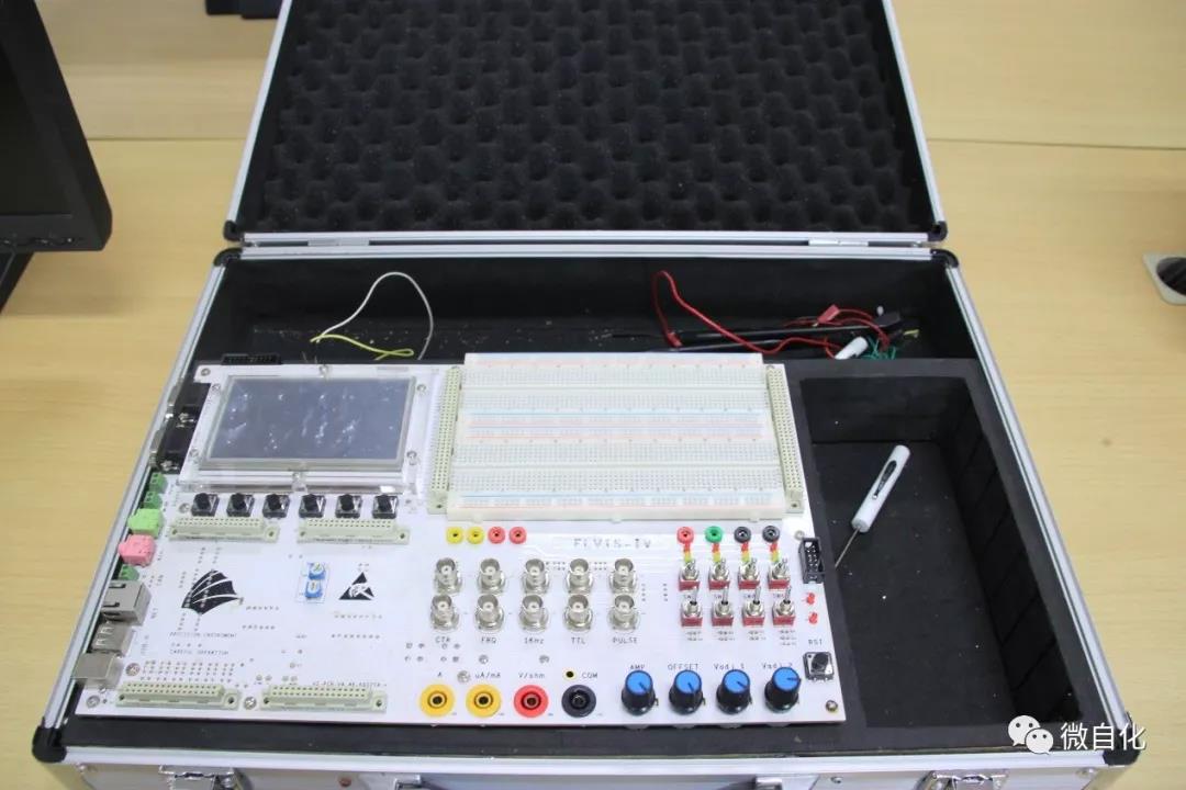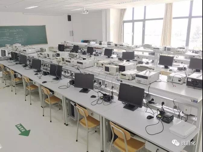 该实验室使用面积100平方米,该实验室主要设备有智能仪表试验箱35套,嵌入式仪器开发板及开发套件35套,示波器、信号发生器及稳压电源数台,调温焊台等实训工具数台。