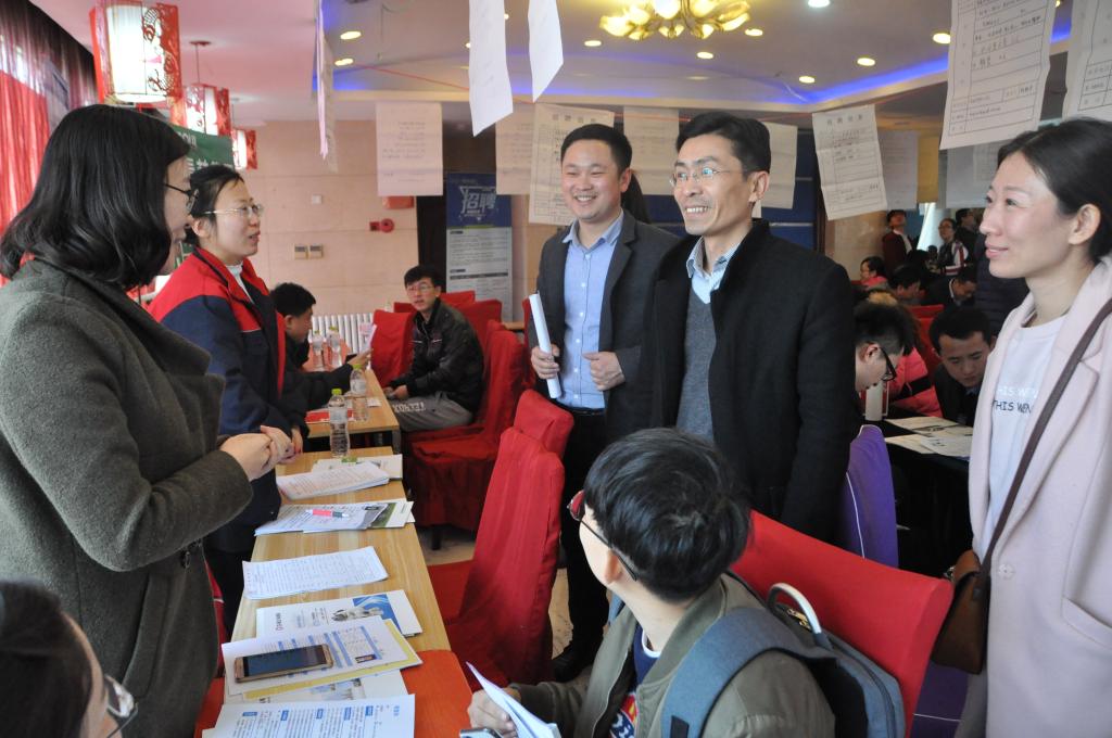 领导亲临招聘会现场指导工作,并与用人单位负责人和毕业生亲切交谈,详细了解用人单位对毕业生的需求情况及毕业生的求职意向。