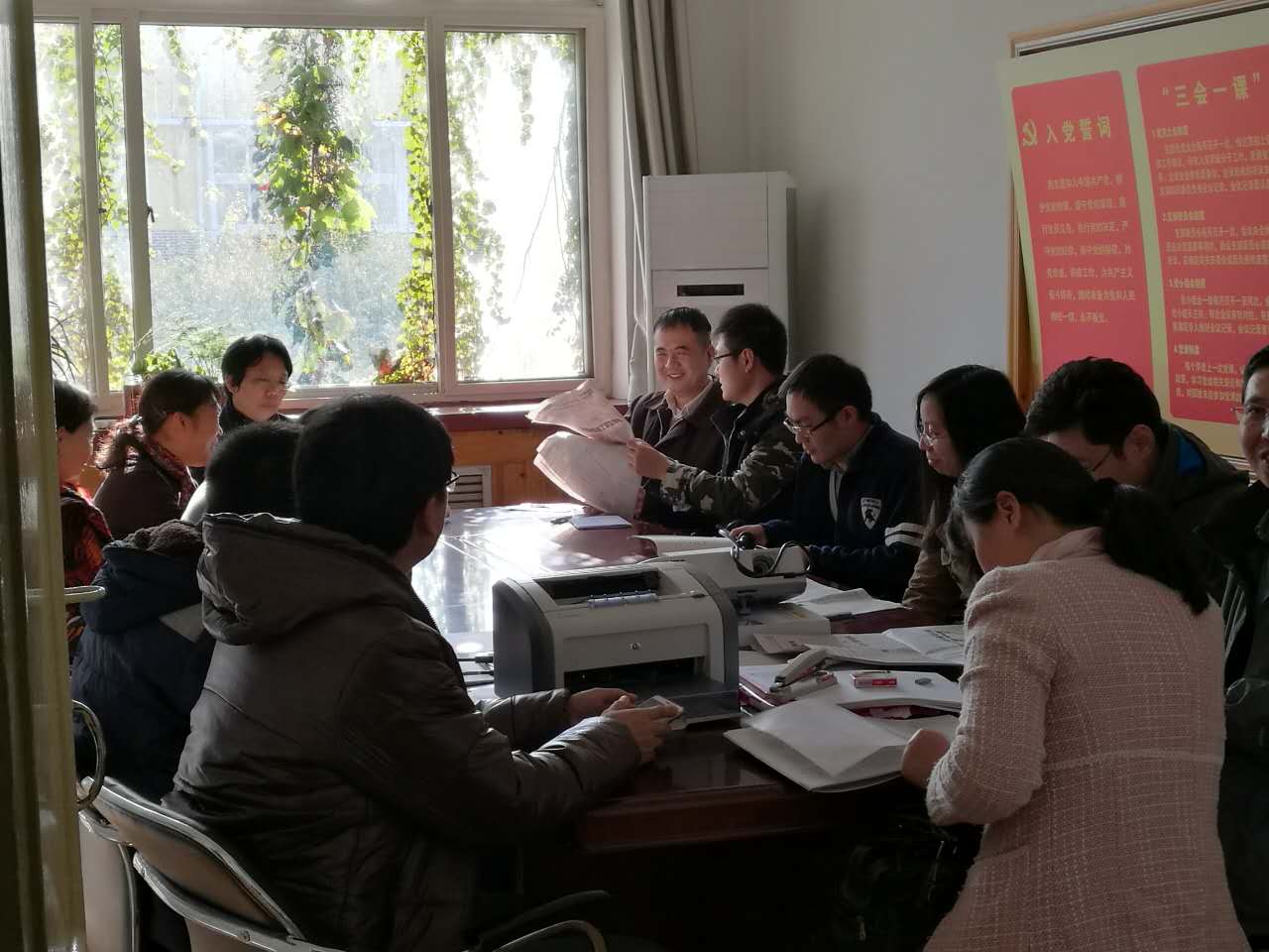 2014级学生预备党员李龙飞同学说,作为一名中共预备党员,同时也是班级学生干部,我们更应该起到好的带头作用。以诚信有爱为原则,积极团结同学,向同学们传递积极向上的信息和能量,互帮互助。并鼓励支持同学们参与学习、科技创新和创业,营造一个相互尊重,团结友爱,积极进取的班集体氛围。同时向团员群众传递党的政策法规。”
