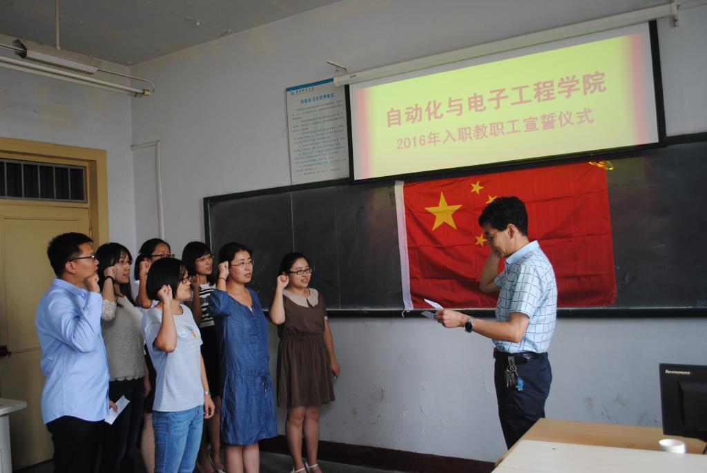 党政领导、2016年入职教职工、老教职工代表和学生党员代表参加了仪式。