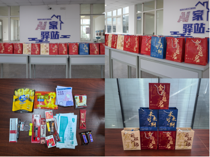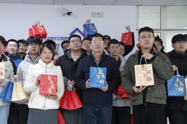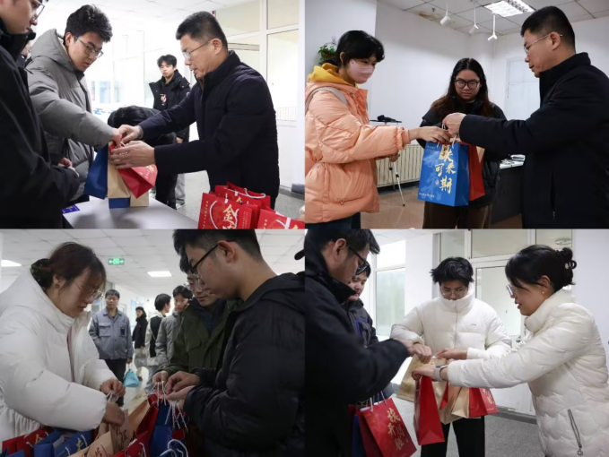 刘名森、张郁浩、全体辅导员亲手将装满关怀的考研大礼包送到每一位考研毕业生代表手中。礼包内精心准备了旺旺雪饼、薯片、士力架等能量零食,耳塞、眼罩、口罩、暖宝宝、面巾纸等实用生活用品,以及签字笔、格尺、小刀、涂卡笔等备考文具,更有承载美好祝愿的祈福香囊,每一份物品都饱含着韦德体育