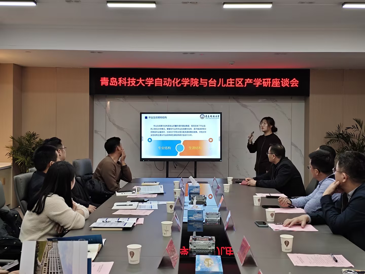 高度重视就业工作,希望以此次座谈为契机,与枣庄企业建立常态化合作机制,在人才联合培养、技术攻关、实习就业等方面深度合作,实现校地共赢。辅导员赵赪赪、徐文丽分别介绍了往届毕业生就业情况、2026届毕业生当前就业现状与枣庄籍毕业生情况。