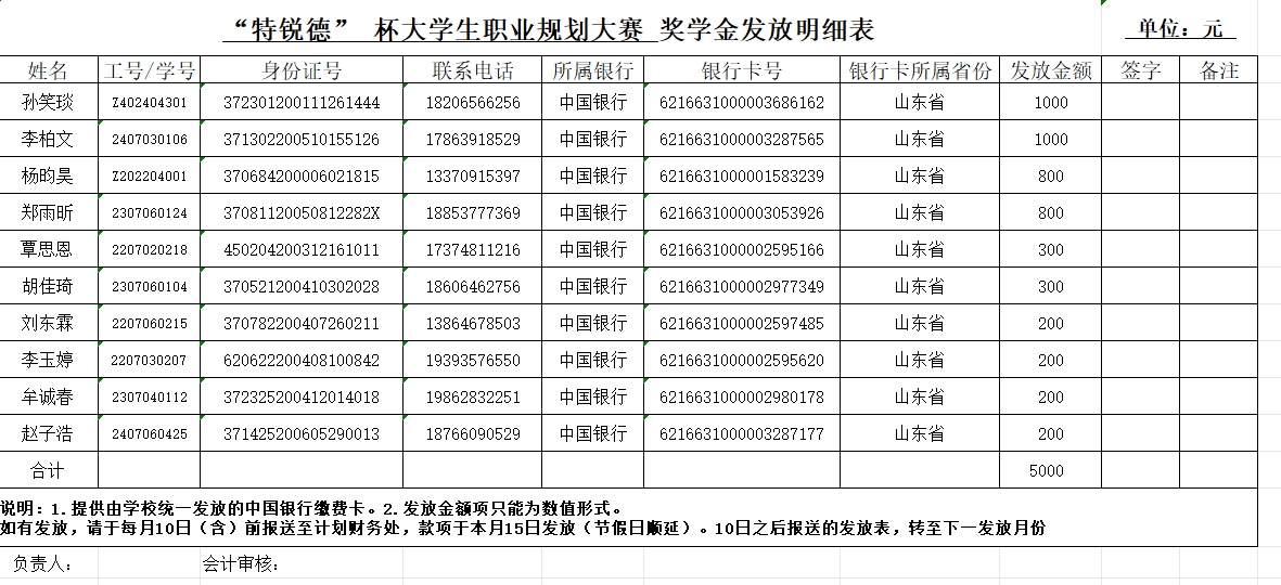 “特锐德”杯韦德体育 第三届大学生职业规划大赛奖学金公示如下: