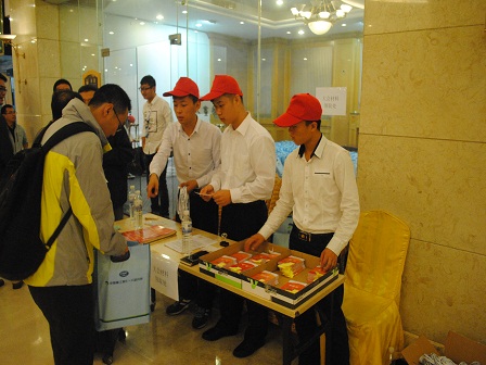 精选30名优秀志愿者早出晚归,他们身着白衬衣、头带小红帽活跃于各大会场,用出色的服务水平、认真的服务态度,展示了青岛科技大学的良好形象,为第七届信息融合大会的成功举办提供了强有力的保障,赢得了主办方和与会嘉宾们的一致认可,会后中国船舶重工集团公司第七一六研究所副总工程师何佳洲博士亲切看望慰问了志愿者,感谢志愿者对本次信息融合大会提供的倾情服务。