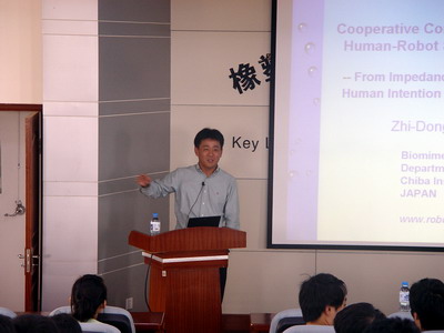 学科建设的关键时期,两位专家学者的学术报告对于促进自动化控制领域的人才培养和学科建设必将起到积极作用。两位教授分别以《挖掘监测操作中的图像处理技术问题》、《多机器人和人机系统的协同控制—由基于协作的阻抗到人类意图理解》为题,深入浅出地介绍了自动化领域学术前沿的研究方法和研究成果,为在座师生做了精彩的学术报告,赢得了经久不息的掌声。