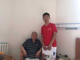 7月25日,调研队员在工作人员的带领下,两两组队,前往锦云村老年公寓看望老人。