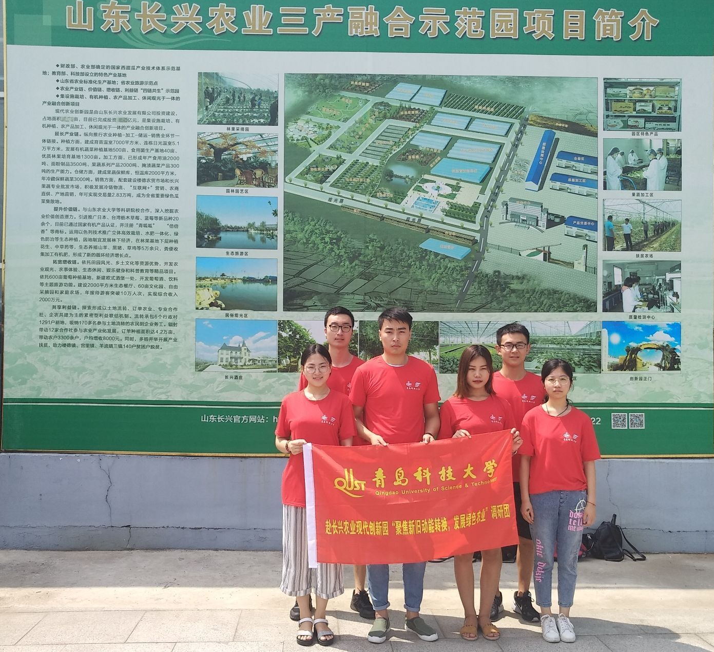 辅导员王伟欣老师、于彬老师的带领下,团队与农业园的负责人双方进行了简要介绍。负责人对调研团的出行表示热烈地欢迎,并热情地带领调研团了解农业园概况。坐落于山东泰安的长兴现代农业创新园是将新旧动能转化落实到实际的成功案例,它是全市现代农业的展示平台与窗口,带动了周边10万农民增收致富,实现了农业低碳、环保、绿色的可持续发展。