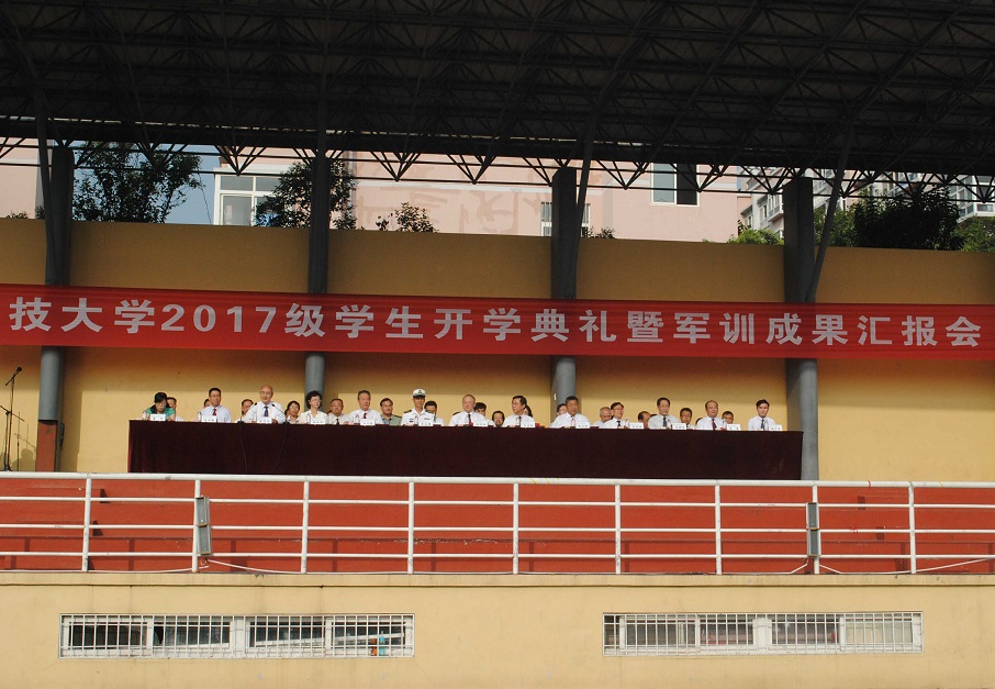 9月15日上午8:00,2017级学生开学典礼暨军训成果汇报会于南苑操场举行。青岛科技大学校长马连湘、海军航空大学青岛校区副院长李永恩、校党委副书记张元利、校领导王文哲、校党委副书记李庆领、校党委常委副校长张淑华、韦殿华、李勇、吕万翔等领导出席了本次开学典礼。