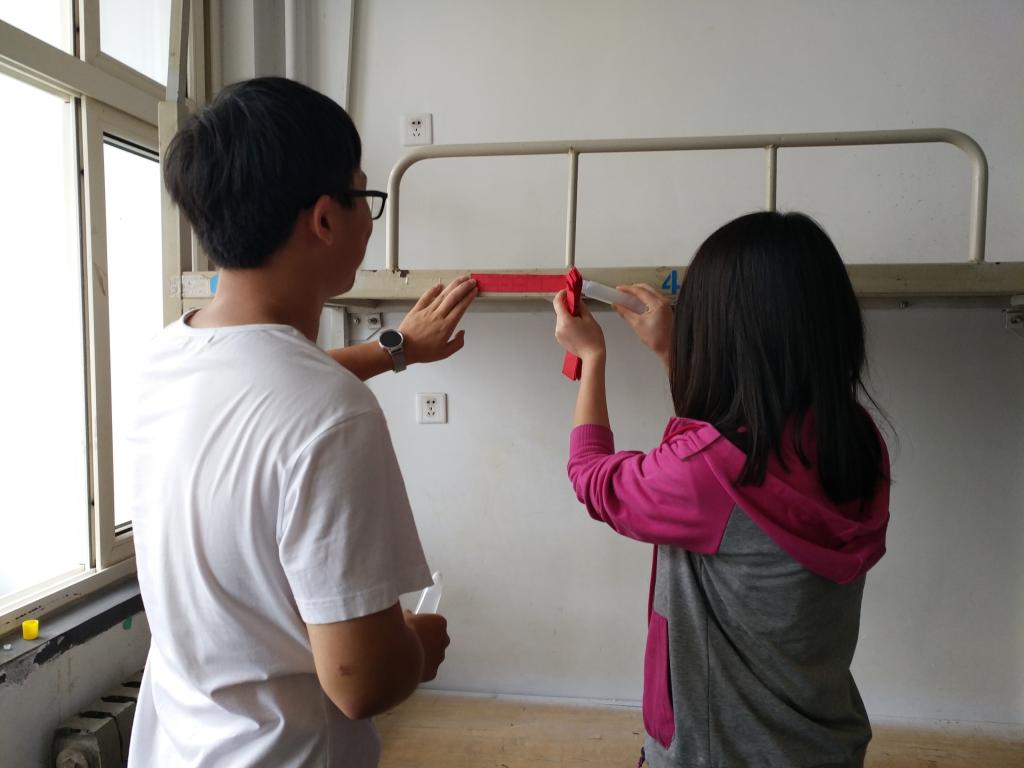 学生会各部门分工明确,精心制作路标和各班级迎新展板;在南北苑各宿舍进行宿舍信息、注意事项和床号的制作和张贴;在韦德体育
