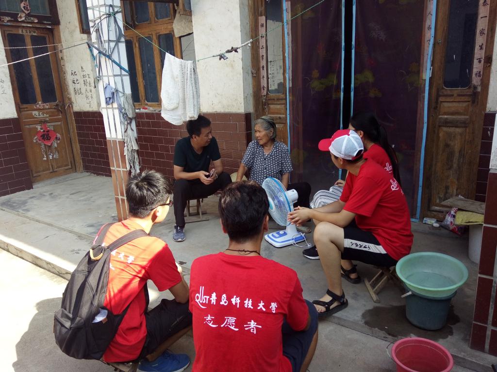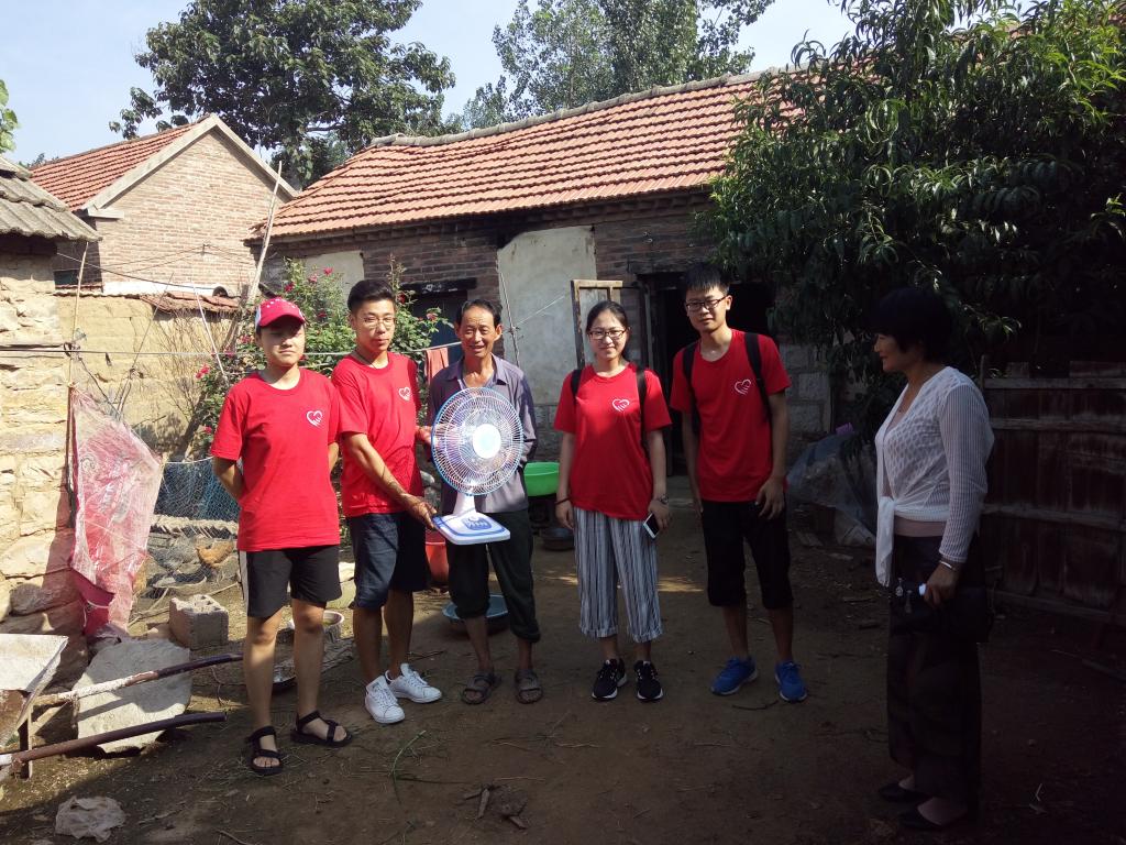 的心意和自己诚挚的问候,在村干部的带领下,前往宋立玉、侯凤山、刘纪伟等人的家中。面对队员们的来访,老人们都很激动,但又为没能好好招待队员而感到愧疚。在队员们和村干部的安抚下,村民们也敞开了心扉交谈了起来。这些贫困户中有儿女早逝,白发人送黑发人的悲伤;有儿女健在却有精神病恶疾缠身的苦痛;也有正值壮年,却只能瘫躺着床上的无奈。在刘纪伟老人的家里,破旧的小院里凌乱的堆放着老旧的农用工具,昏暗的小屋里只有一盏灯,和一台布满灰尘和蜘蛛网的老式风扇。队员们帮助老人把电风扇插上电。看着电扇转动起来,老人感受到阵阵凉风后,不禁热泪盈眶,队员和村干部一行人也偷偷拭去眼泪。在结束走访后,队员们会到村委会办公室,就15天实践所得的感受体会及一些个人见解与村干部进行密切交流,并感谢村干部及村民们的热情照顾和帮助。刘书记表示了对队员们表现的肯定,并希望以后继续来茶坡村开展实践。