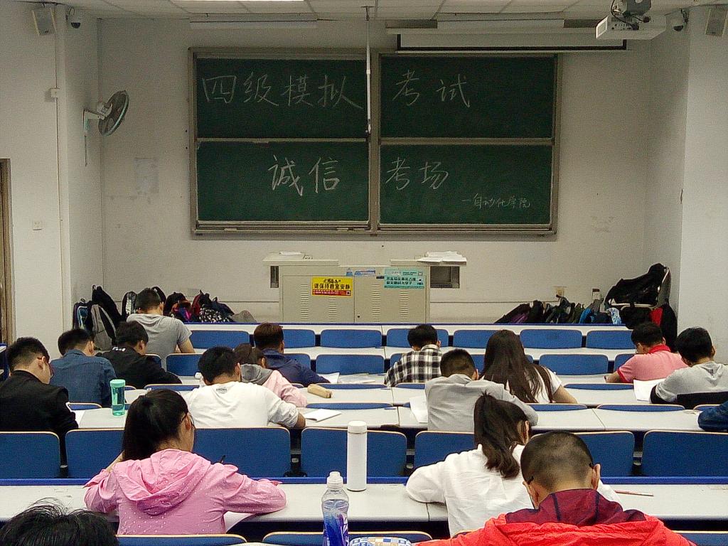 全体学生在弘毅楼进行四级模拟考试。在考试过程中同学们不慌不忙、沉着应对,依次做完作文、听力、选词填空、阅读理解等题目后,9:20考试时间结束。在整个考试的过程中,同学们认真答题,遵守纪律,尤其在诚信考场中,他们仍保持着良好的考风考纪。