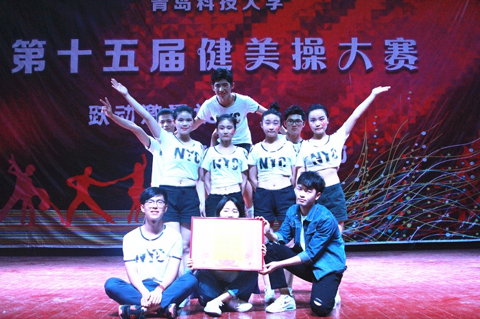 健美操代表队在青岛科技大学第十五届健美操大赛中一展风采,用活力十足的舞蹈点燃了青春的热情。