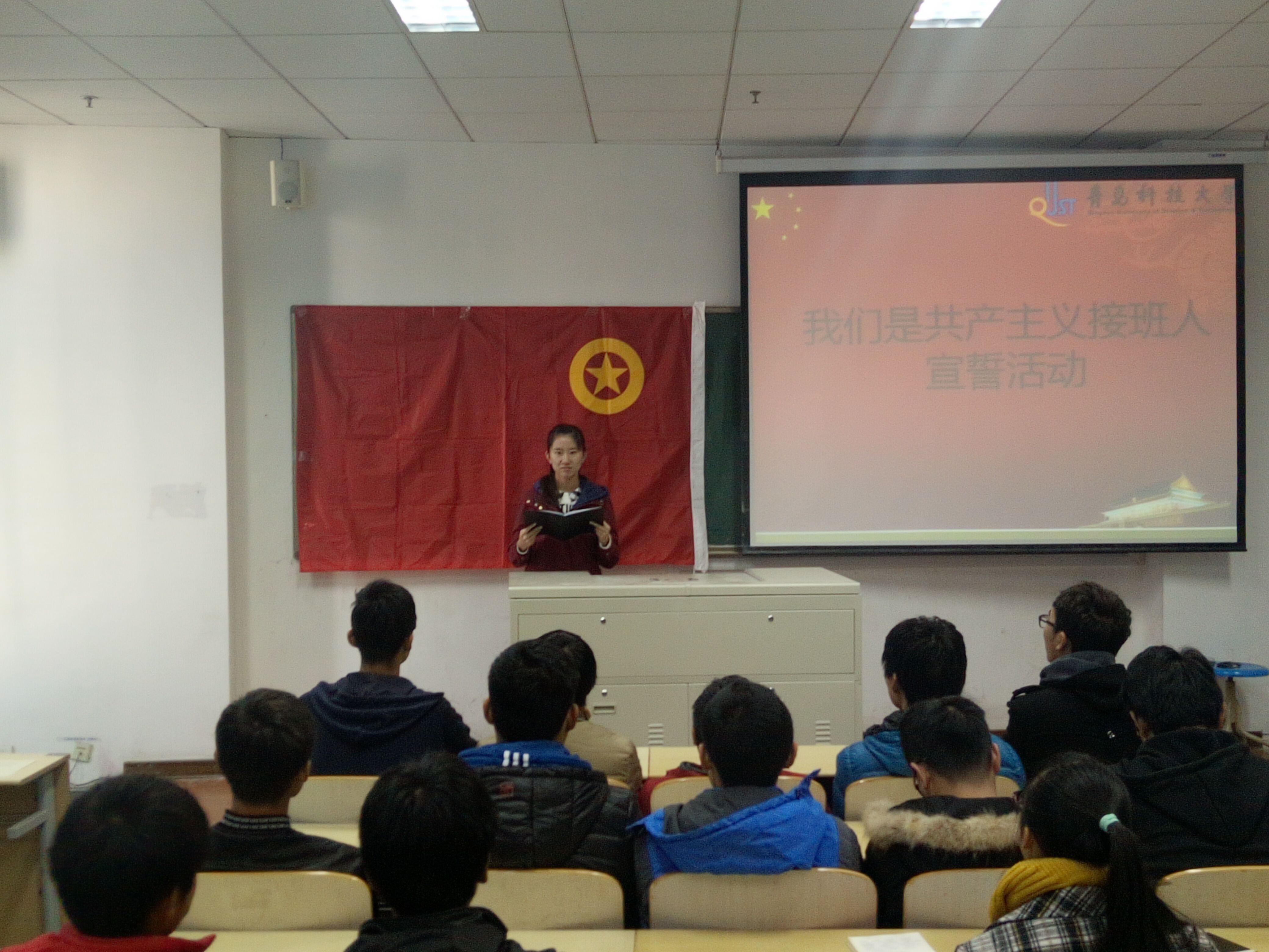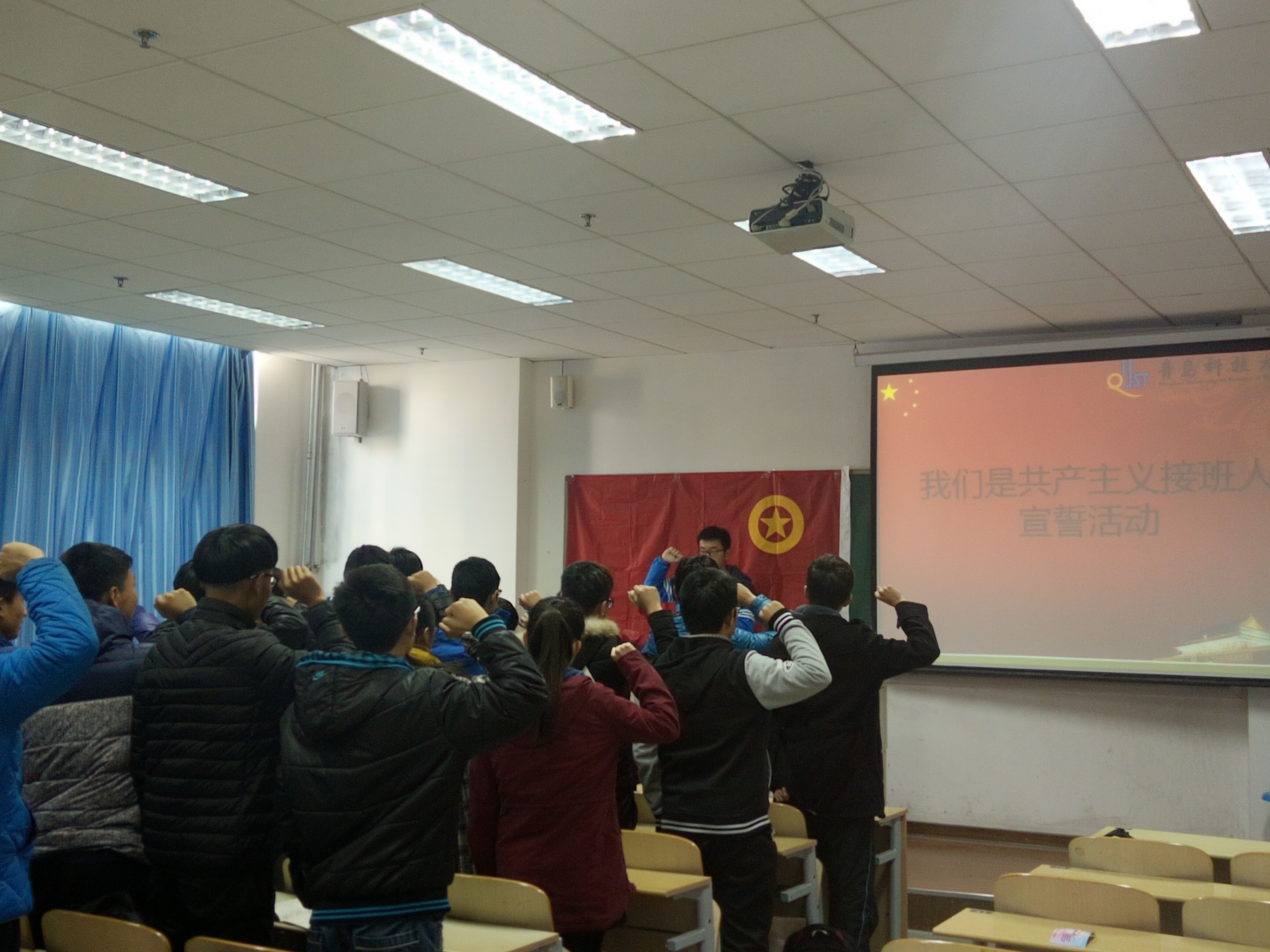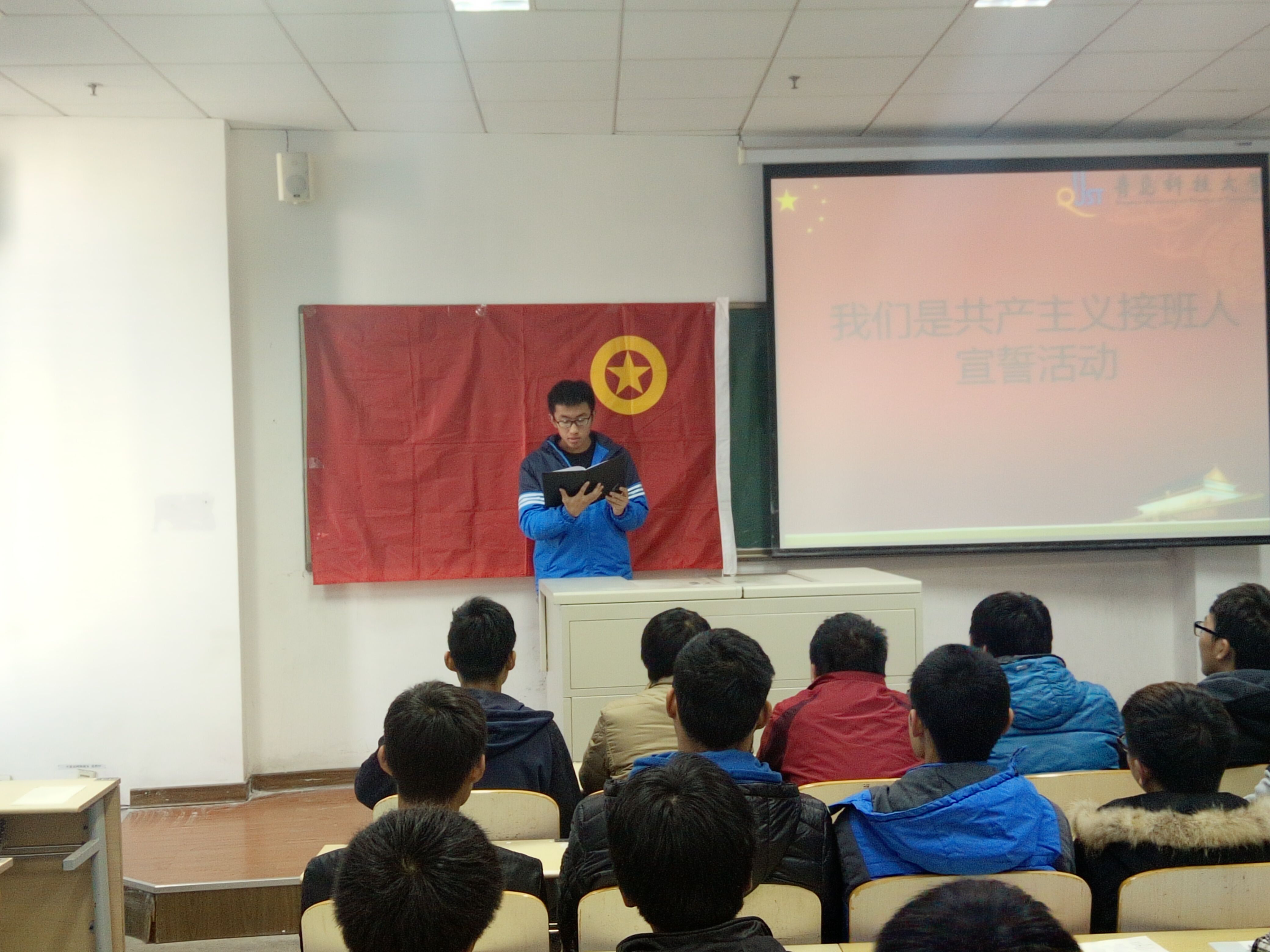 “我们是共产主义接班人,继承革命前辈的光荣传统”,每当这首歌曲旋律响起的时候,我们都热血沸腾。11月29日上午电气154在明德307教室开展“我们是共产主义接班人宣誓活动”主题活动,让当代大学生通过宣誓来提醒自己身为团员的职责,增强学生的社会责任感使命感,从而做一名合格的共产主义接班人,