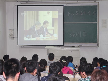 会议伊始,主持人带领大家观看了十八届五中全会思想解读相关视频,指出十八届五中全会和习近平总书记重要讲话精神对日后学生会工作的重要指导意义。随后副主席李可提出“干部们作为当代大学生,学生会作为学生的代表组织,更应作出表率,认真学习大会内容,传达先进思想”。为此,主持人现场发动同学们就“你所知道的五中全会”进行话题讨论,各学生干部积极参与讨论,说出了自己对全会的理解。