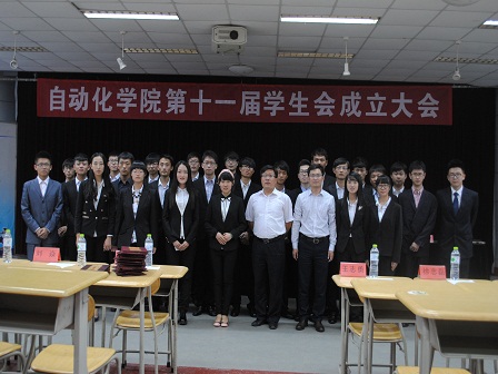 学生会干部表示祝贺,并对第十一届学生会提出四点希望:一是攻坚克难,快速成长;二是保持优势,打造新特色;三是加强学习,以身作则;四是充分发挥学生会的作用,建设良好学风。会上,表彰了2013—2014年学生会优秀学生干部,颁发了证书及纪念品,并为学生会主席团成员及各位部长颁发了聘书。大会结束后,学生会成员进行了合影留念。