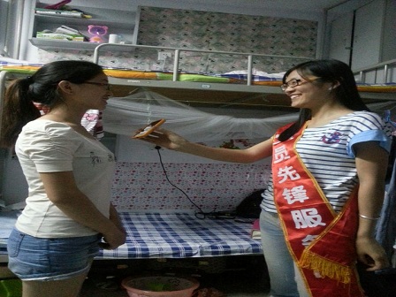 的祝福,有的对自己的同学表达了感谢,还有的希望学弟学妹们好好学习,天天向上。同时,11级的几名党员来到女生宿舍,学姐们很可爱,有的学姐祝舍友能找个好老公,还有位学姐说感谢这次活动能给她这样一个机会,对她的室友表达感谢,还有的学姐唱起了歌。