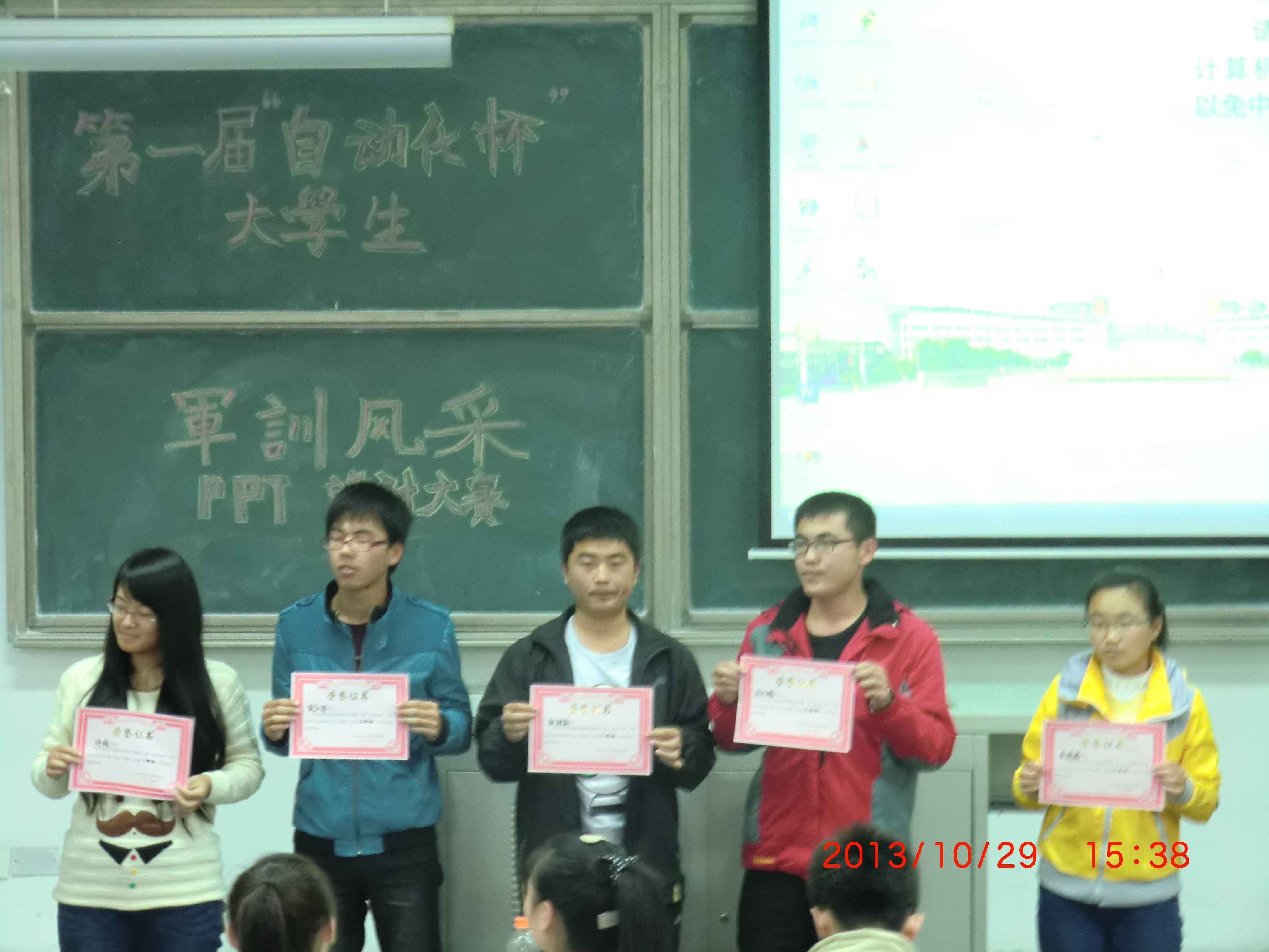 下午两点,设计大赛正式开始。这次比赛吸引了许多学生前来参赛,通过比赛来看,每名参赛选手都为这场比赛提前做了精心的准备。在比赛的过程中,选手精神饱满,激情澎湃的向大家详细阐述自己的PPT的设计理念,用自己的解说打动评委、观众来赢得更多的投票。当一张张充满回忆和故事的照片显现在屏幕上时,引起台下观众的共鸣,会场数次响起热烈的鼓掌。这些珍贵的照片记载了我们军训生活的辛勤与汗水、欢乐与苦涩、成长与蜕变。接着,评委就PPT的设计风格、选材视觉角度以及选手的情感演讲等方面进行点评,通过“公平、公正、公开”的竞选评出一、二、三等奖。最后比赛在热烈的掌声中结束,电信131班的徐晓同学获得一等奖。