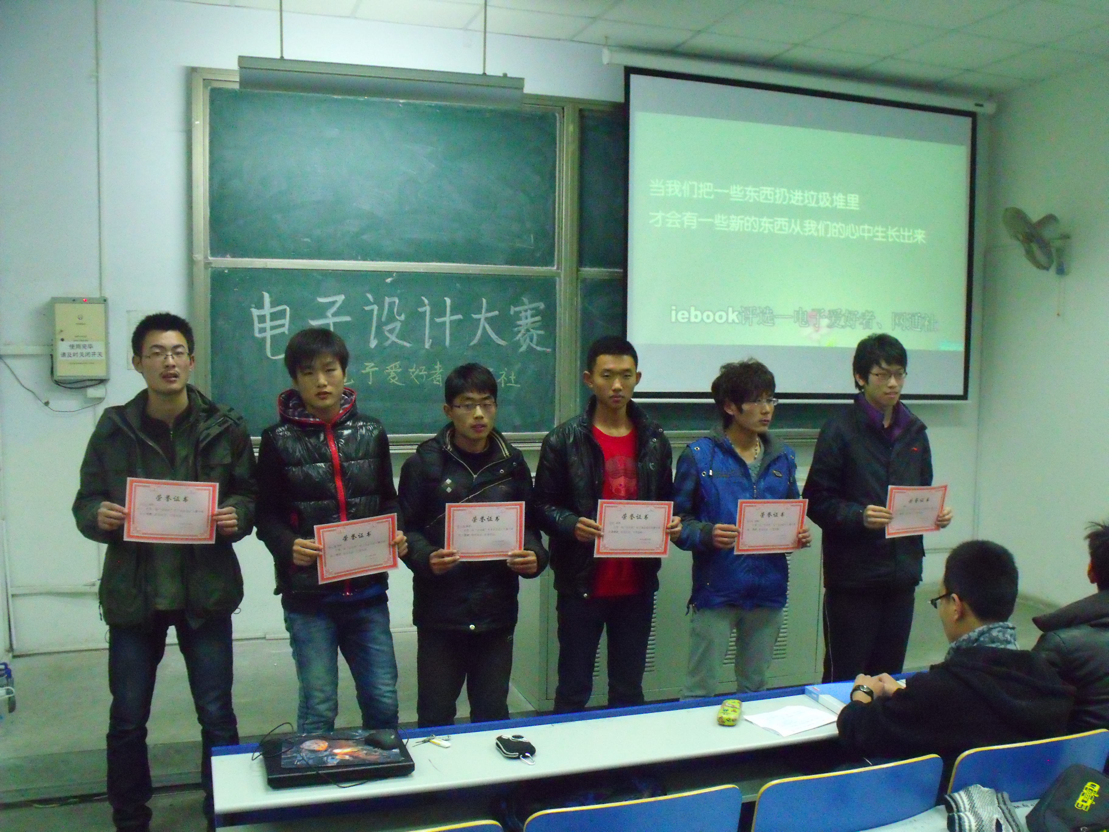 2012年12月11日下午一点三十,在弘毅楼E101举行了一场别开生面的电子设计大赛并取得了圆满成功。