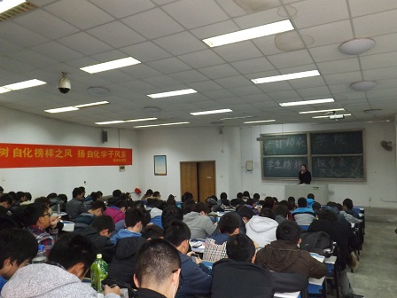 于2012年12月4日下午在崂山校区举办主题为‘树自化榜样之风,扬自化学子风采’的学习榜样报告会。2012级韦德体育