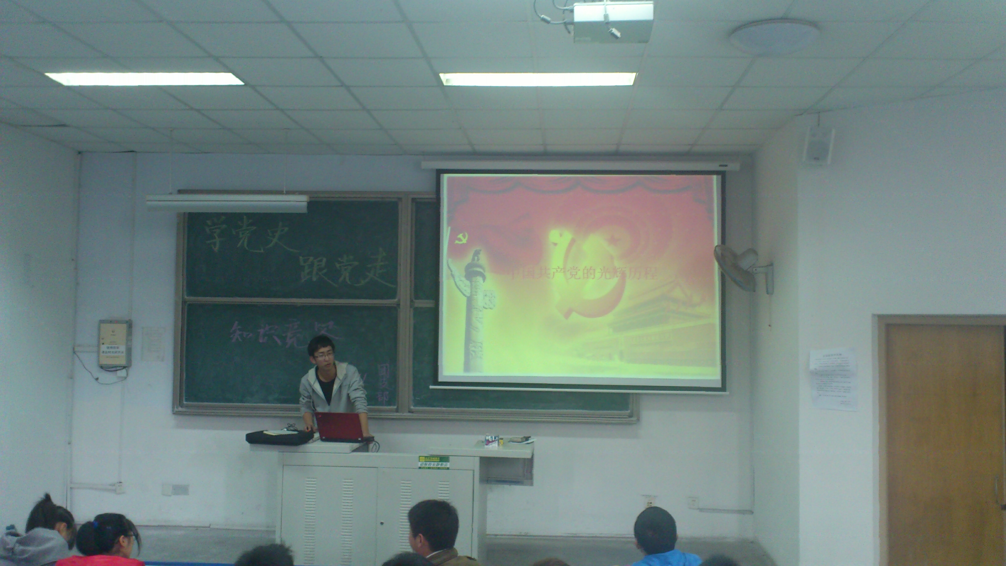 11月20日13点,主题班会在弘毅楼E区101教室开始。参会人员为自化124班全体同学,班长邢广欣,团支书缪鹏飞主持。班会开始,首先由班长带领同学们回顾了中共十八大大会,学习了十八大精神。紧接着最振奋人心的是这次班会的中间环节,由团支书支持的“学党史,跟党走”的知识竞答。团支书提问有关党的问题,同学们踊跃回答,争先恐后,场面十分热闹,充分显示了同学们对党的热爱之情。比赛结束后,班长以视频的方式重温了党的历史,自建党以来走过的艰辛岁月,以及回顾了党的十年成就。最后,主题班会以同学们齐唱国歌的方式宣告圆满结束。