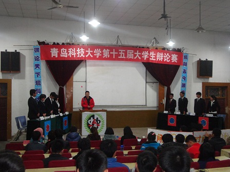 的孟美菊老师及吕新福老师,还有各院代表。然后介绍双方四位辩手,正方双方为一辩赵迪,二辩卢宇政,三辩黄雅茵,四辩薛均翰。反方为一辩徐俊强,二辩宋其斐,三辩刘锦文,四辩曹洪美。都显示出必胜的决心。然后进2012年11月13日周二晚6:30,由校学习部主办的青岛科技大学第十五届大学生辩论赛第入陈词阶段,双方一辩就辩题的定义展开,引出各自主题,为后边做铺垫。正方从时间空间,横向纵向对辩题深入解剖,反方也对辩题深入理解。最为精彩的是攻辩阶段,双方你来我往,唇枪舌战,比赛进入白热化。正方辩手以敏捷的思路,犀利的言辞巧妙躲过对方的陷阱,赢得场下观众阵阵掌声。进入总结阶段,双方四辩以全面精辟的言辞,再次深化各自的主题,针对辩题做最后总结。最后由吕新福老师进行点评,经讨论嘉宾讨论决定韦德体育