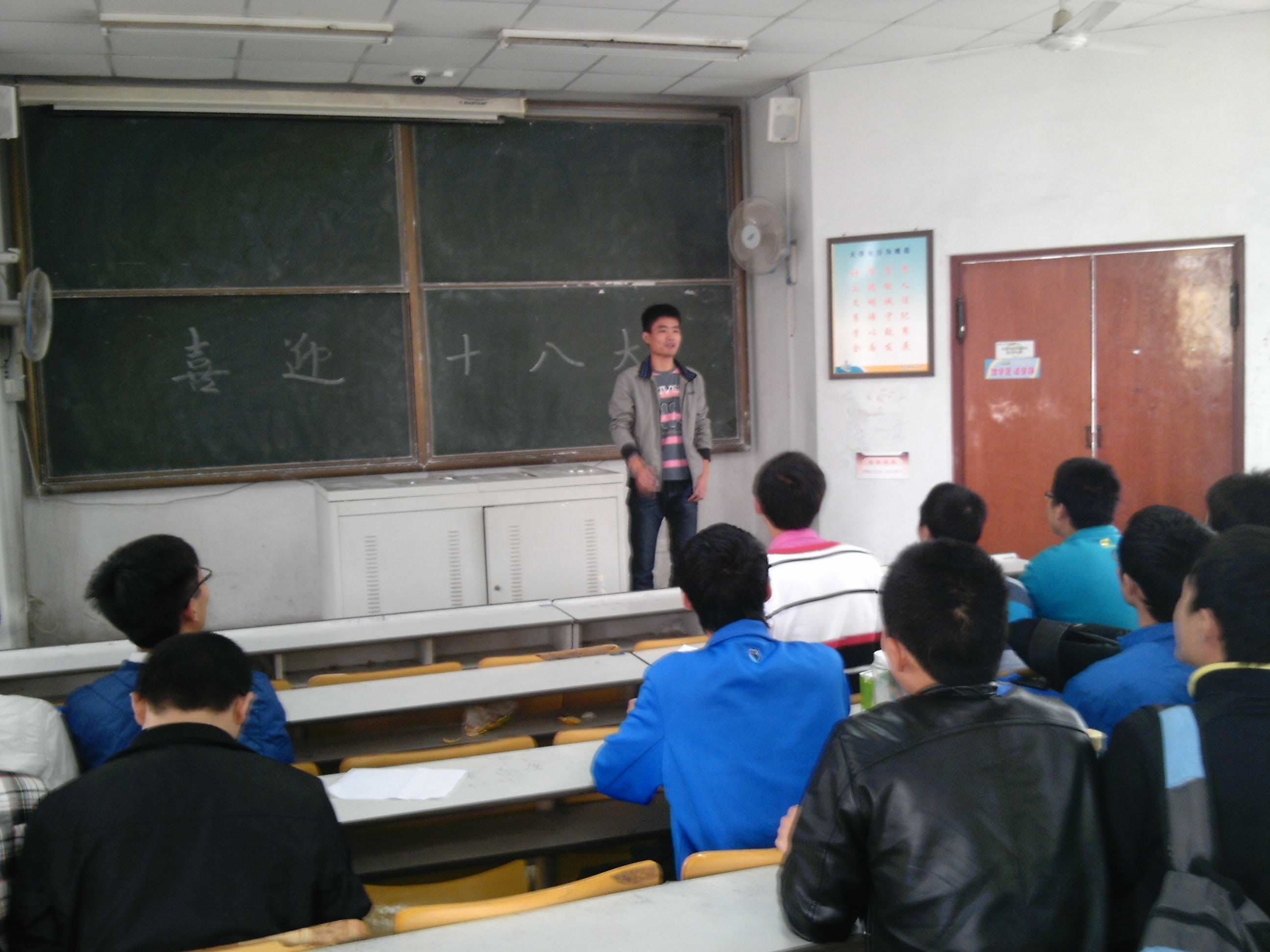 全班30名同学尽数参与。班会由班长,团支书共同主持。班长对十八大进行了总体介绍,加深了大家对这一重要会议的了解。两人分别对十八大的具体内容进行了全面解释,让大家觉得十八大就在我们身边。根据班会的主题,班级还举行了“喜迎十八大”书法大赛。采用计时书法的形式,由在场同学在五分钟内写下必选内容(喜迎十八大,共享新生活,预祝党的十八大顺利召开)和选写内容(自己最想对党和祖国说的话)。之后大家通过投票选出优秀的作品,由班长为他们颁发精美的小礼品。