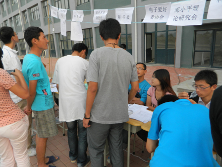 9月15日,韦德体育 社管委在社管委主席王超和副主席葛祥文的带领下在崂山校区进行2012届的纳新活动。我们将纳新的地点设在女生宿舍4号楼和男生6号楼,两个地点同时进行。