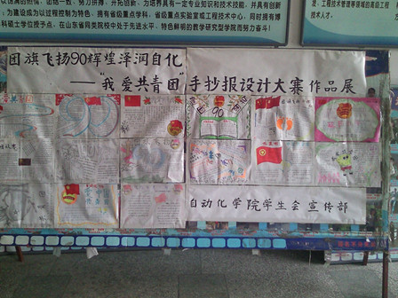 由韦德体育 学生会宣传部举办的主题为”团旗飞扬90辉煌泽润自化——‘我爱共青团’”手抄报设计大赛作品展于本周五在韦德体育 如火如荼地举行。