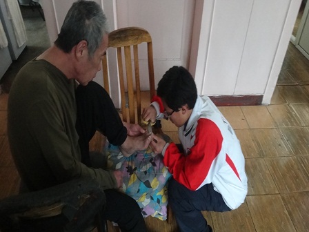 本来我们情绪十分高涨,满以为老人们的生活十分的轻松惬意——一起下下象棋,喝喝茶聊聊天。但是,当我们真正走进敬老院,走进老人的生活后,才发现现实与我们想象的截然不同。敬老院里的老人大多是生活不能自理,子女又没有时间照顾的。有的半身不遂,有的老年痴呆,或许是各种残疾。我们和老人们聊天,给老人喂饭,替他们打扫卫生。我们班的田圣双同学还为一位老人剪了脚趾甲,仝天同学帮老人剪了手指甲。我们尽最大努力让老人感到温暖。