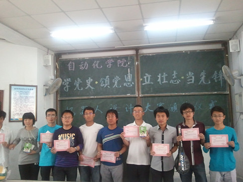 中午12点半,参加会议的人员全部到齐,主持人宣告颁奖典礼开始。首先,主持人带领大家回顾了木牛流马机器人大赛的整个过程。从两个月前提出这个有创意的想法开始,学生会秘书处成员就将想法付之于行动。完善策划,细化比赛环节,宣传比赛理念,寻找老师的辅导和帮助,给参赛队员提供实验室和指导老师的帮助···再经过初赛、复赛、决赛,最终从十几只队伍中决出了七只优秀队伍分获各奖项。其中,一等奖为逆流的鱼,二等奖为神马组合,三等奖为流云,最佳创意奖为机器侠,优秀奖为霹雳的旋风、朝气蓬勃、BROS。此后,秘书处秘书吕继翔还宣布木牛流马大赛将作为秘书处的一个固定活动,为每届学子提供展现自我的舞台。