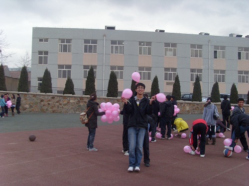 活动开始前两个班级同学都进行了精心准备,提前联系了参加活动的两班同学。下午两点,两班同学都按时到场,活动在主持人幽默的开场白中拉开了序幕,有趣而又激烈的班级游戏使整个活动达到了一次又一次高潮,操场上不时传来同学们的鼓掌声、欢笑声。现场气氛最活跃的要数踩气球了,男生每人脚上绑两个气球,由对方女生发起进攻踩男生脚下的气球,男生保护气球。最后那对保留的气球多那队获胜。一声开始女生就像男生发起了进攻,男生跑女生踩得场面真是不亦乐乎。两个小时很快就过去了,活动逐渐接近尾声,最后,此次活动圆满落幕。