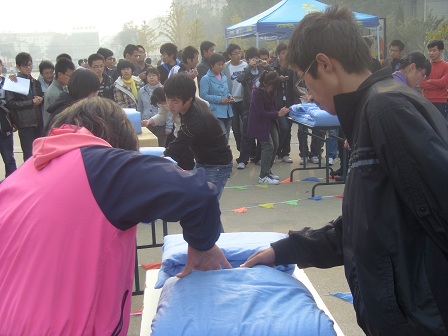 下午两点,比赛拉开帷幕。自动化106班孙小伟同学第一位出场,他顶住压力,一丝不苟地完成了他的作品,得到现场同学和评委的好评。接下来出场的是韩会山和代坤艳两位同学,他们进行的是男女单臂叠军被比赛,它考验的是男女同学之间相互合作的默契程度,凭借沉稳的心态,默契的协作,两位同学也出色的完成了任务。接下来进行的是才艺表演环节,同学们纷纷拿出各自的看家本领,为大家奉献了一场精彩演出,现场气氛甚是热煭,掌声不断……