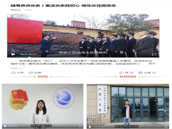 团干部录制了《星火燎原焮天铄地》、《初心》、《胸怀千秋伟业,百年恰是风华正茂》等多部党史宣讲视频通过线上平台发布,并深入各团支部开展了党史宣讲活动,提升青年团员认识水平,筑牢思想之基;学生会成员每人一部党史小故事微视频,在线发布后在团员青年中引起热烈反响;学生会组织团员走上街头,开展了“党史快问快答”的活动,对我校大学生进行随机提问,加深青年学生对党史的了解学习。