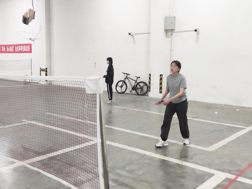 羽毛球协会相关负责人宣读比赛规则和分组情况,到场选手有序分组开始比赛,比赛过程中学生会志愿者协助裁判观察出界情况。