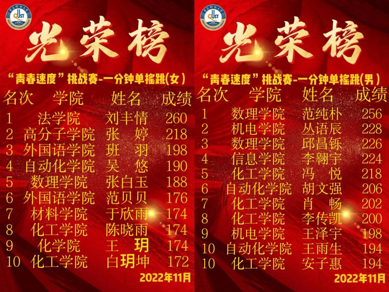 最终,我院在青岛科技大学跳绳大赛中取得优异成绩: