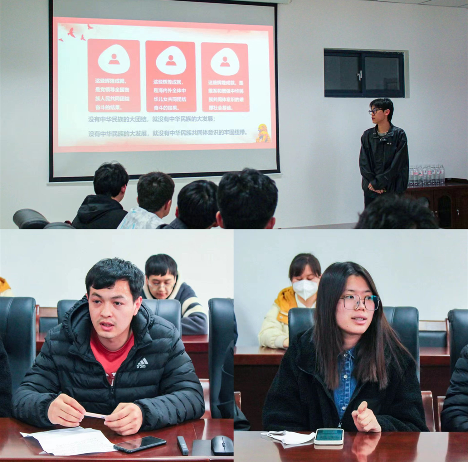 领导老师对少数民族学生的深切关怀和亲切慰问,针对国家、学校对于少数民族学生的相关资助政策做了详细解读,并向与会同学提出三点建议:一是要在思想政治上不断进步。自觉维护祖国统一、民族团结,时刻秉承民族团结一家亲理念,像石榴籽那样紧紧抱在一起,手足相亲、守望相助,相互勉励、共同成长;二是要在专业学习上不断努力。多读书多学习,利用好图书馆的资源,积极参加各类文体活动,全方位提升自己的综合素养;三是要在人生目标上不断追求。积极肩负起新时代青年的责任担当,将小我融入大我、与时代同步伐、与人民共命运,让青春在实现中华民族伟大复兴征程中绚丽绽放。