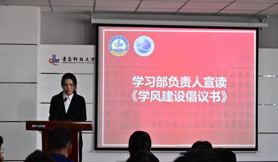 会上,团委老师刘志飞宣读学风建设月的活动方案,公布学风建设月系列活动安排。学生会学习部负责人郭欣然宣读《学风建设倡议书》。