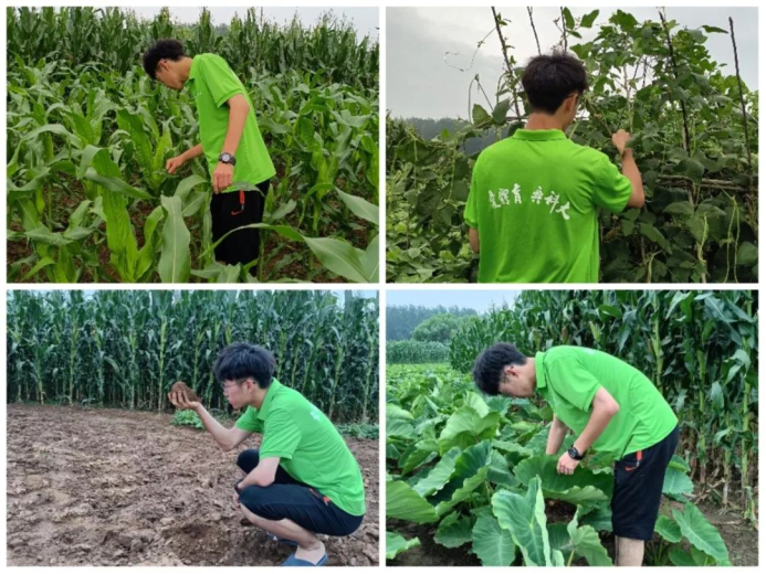 在东富山村经济作物、粮食作物种植区域,团队专访队员深入田间地头,通过实地调研以及查阅相关资料获悉,东富山村土质多为棕壤土类,适种大豆、玉米,也可发展果树业。团队成员实地调查了当地作物种植条件及生长情况,分析了玉米、大豆、花生、辣椒、大葱等的土壤养分现状,作物果实生长情况,确定出作物的施肥方案。在此基础上,对东富山村特优农作物产地进行更深入的调查与评价,为保护生态环境、发展名优特产提供依据,助力乡村振兴。