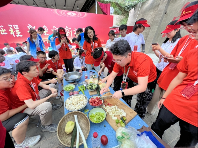 “自己动手,丰衣足食”是抗日战争时期党领导抗日军民加强根据地经济建设,开展大生产运动中所提出的动员口号。根据基地安排,实践团成员参加了“自己动手,丰衣足食”实践活动。成员们以基地提供的食材为基础,亲自动手做饭,大家各司其职、团结协作,共同完成了洗菜、备菜、烹饪等工序。通过实际操作,实践队成员深感革命先辈自给自足的艰辛、不易,也意识到了自力更生和勤劳致富的重要性,深入地了解了延安精神的内涵。