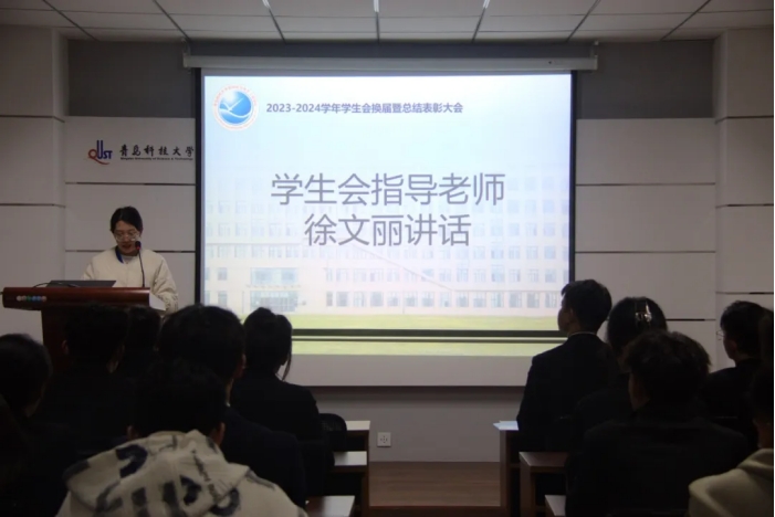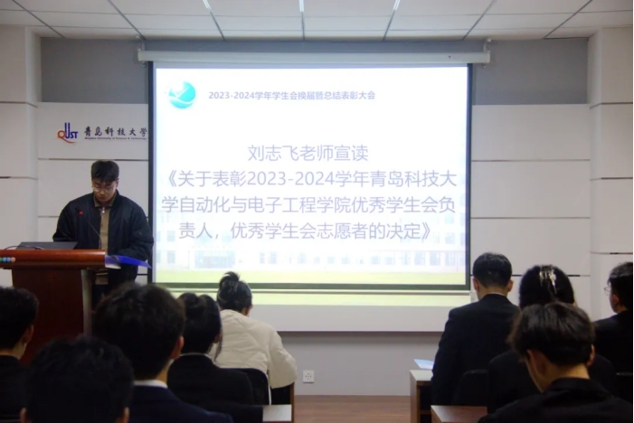第二十届学生会主席团成员及各部门负责人的决定》,刘志飞宣读《关于表彰2023-2024学年青岛科技大学韦德体育