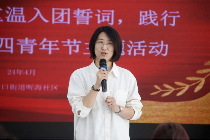 马仁轩带领全体团员回顾了五四运动的光辉历程,强调了五四精神的时代价值,并勉励广大团员青年要继承和发扬五四精神,坚定理想信念,勇攀科学高峰,并鼓励新团员们要积极参与社区实践活动,将所学知识与实际相结合,为社区建设贡献“自”家青春力量。