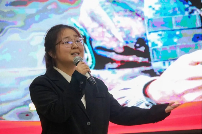 比赛现场,刘宇航用真挚的感情和丰富的语言生动地表达了对“五四精神”的理解和传承。她紧紧围绕“传承五四精神,担当青春使命”的主题,讲述了被联合国授予和平荣誉勋章的张钦、疫情时援鄂医疗队的00后护士刘佳怡和只有19岁的戍边烈士陈祥榕的感人故事,向现场的观众展示了五四精神在当代年轻人身上仍然光彩夺目,熠熠生辉。饱含深情的表达、铿锵有力的话语,让整个赛场激情澎湃、掌声不断,充分展示了我院学子视野之广、内容之深、思考之浓的学识和风范。